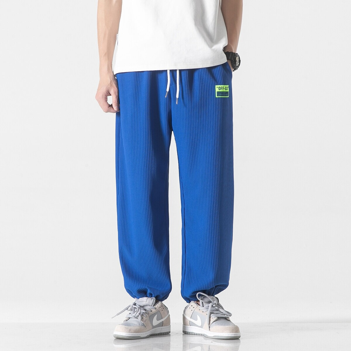 Electrifying neon hues make these pants instantly pop, strikingly contrasted by deep pleats for a sharp, streetwear-inspired edge. The wide-leg fit offers extra room while effortlessly draping for a look that's both polished and relaxed.