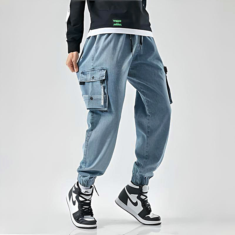 Our unique denim joggers merge the cool, rugged aesthetics of jeans with the relaxed, adaptable fit of joggers for a standout look.