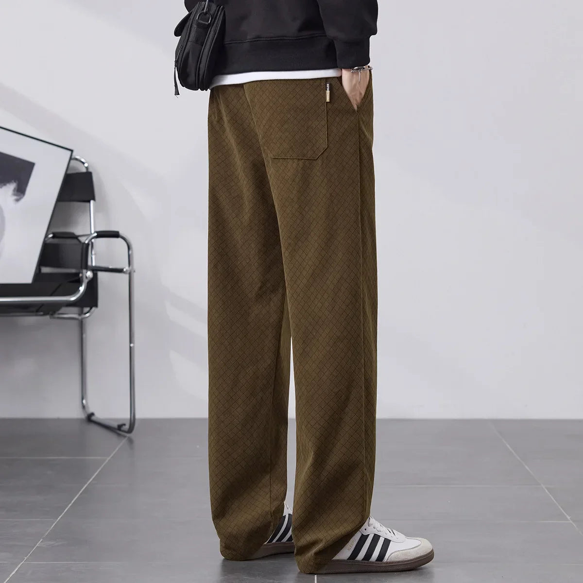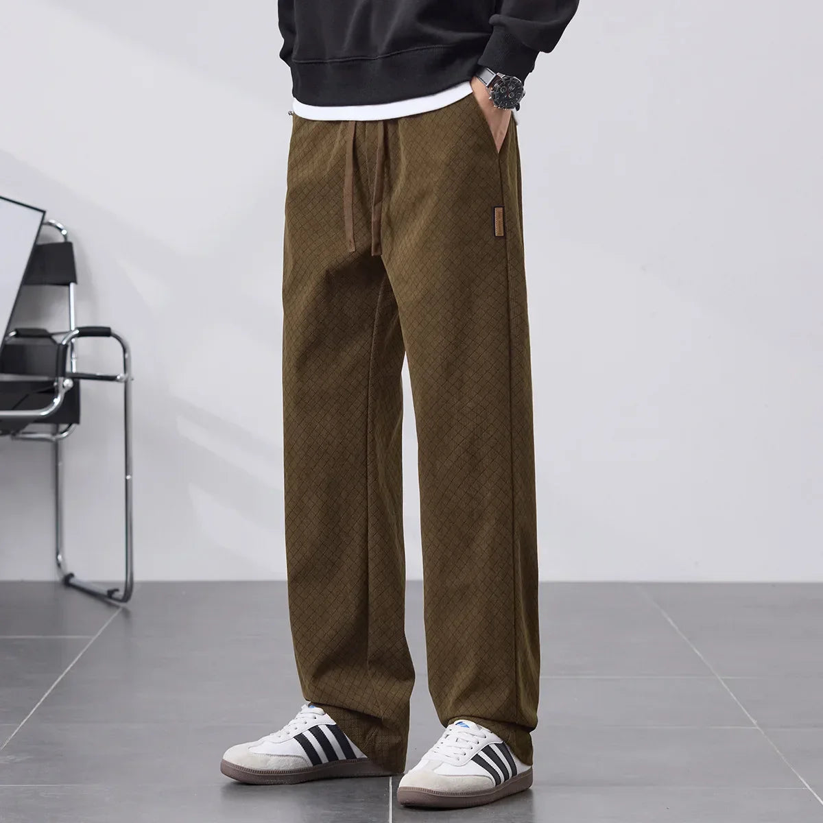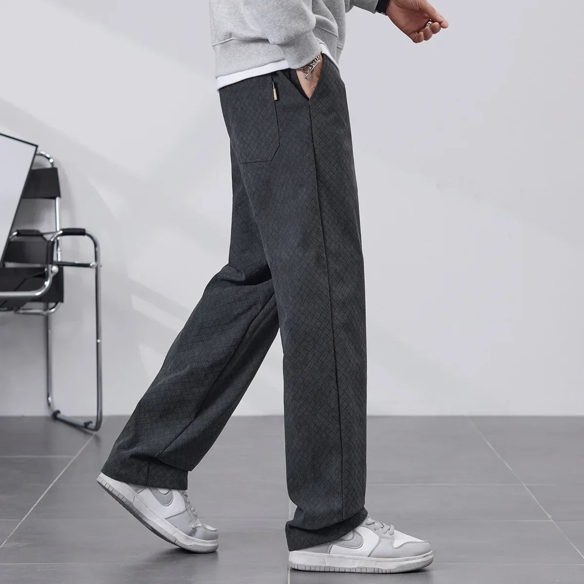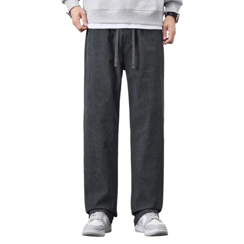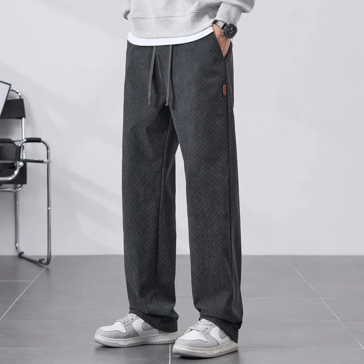 Soft fleece lining locks in warmth while the straight-leg cut falls smoothly from hip to ankle. A subtle diamond pattern adds quiet texture without bulk. Built to move with you through cold days, they balance comfort and rugged durability.