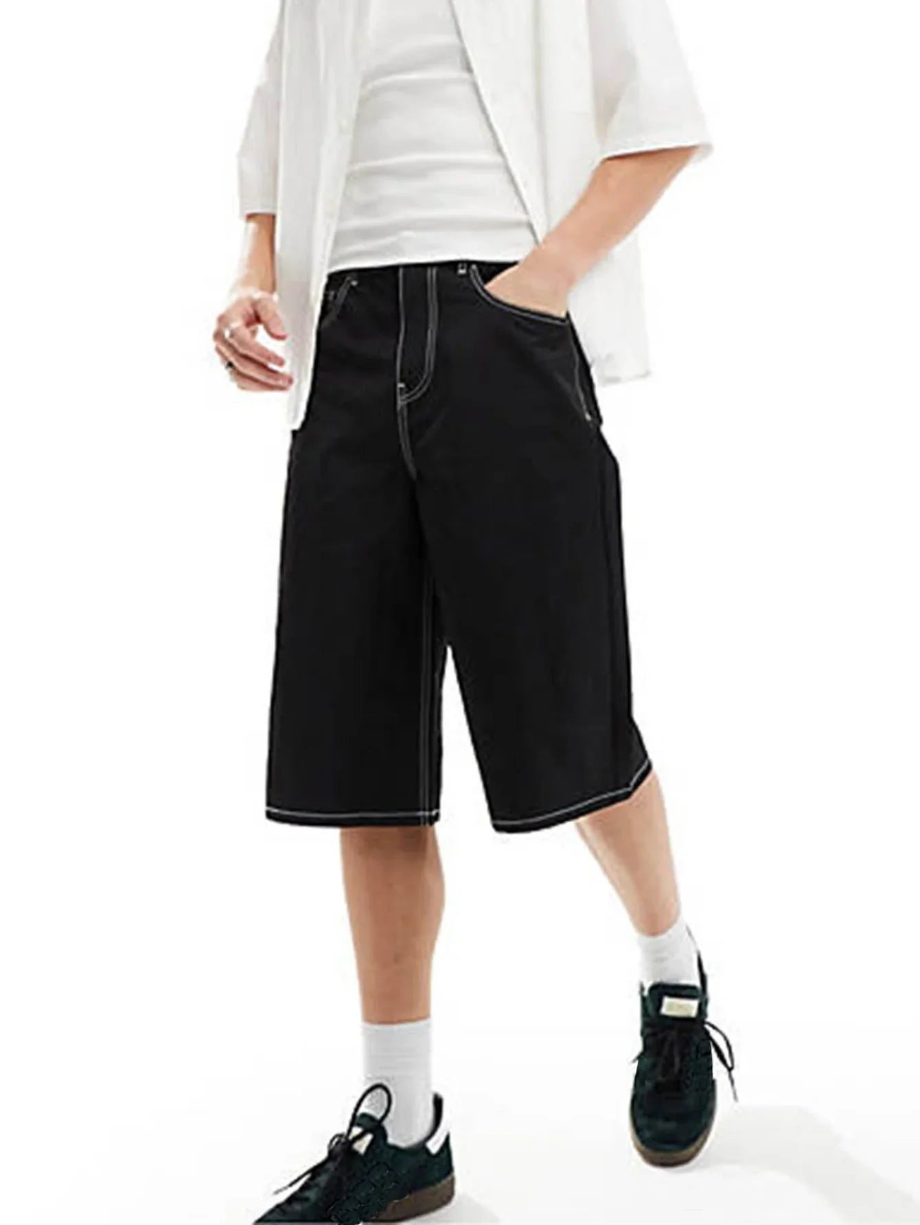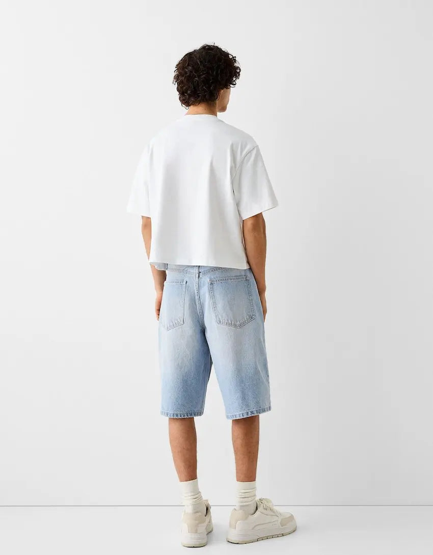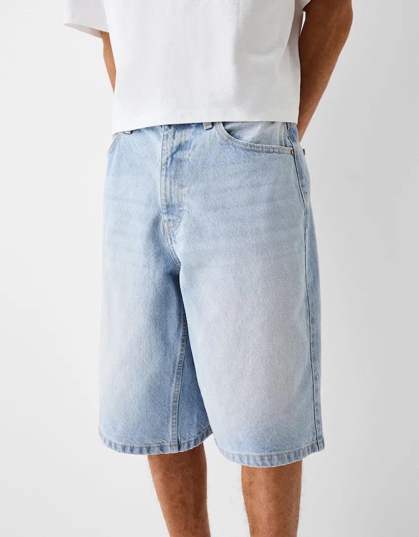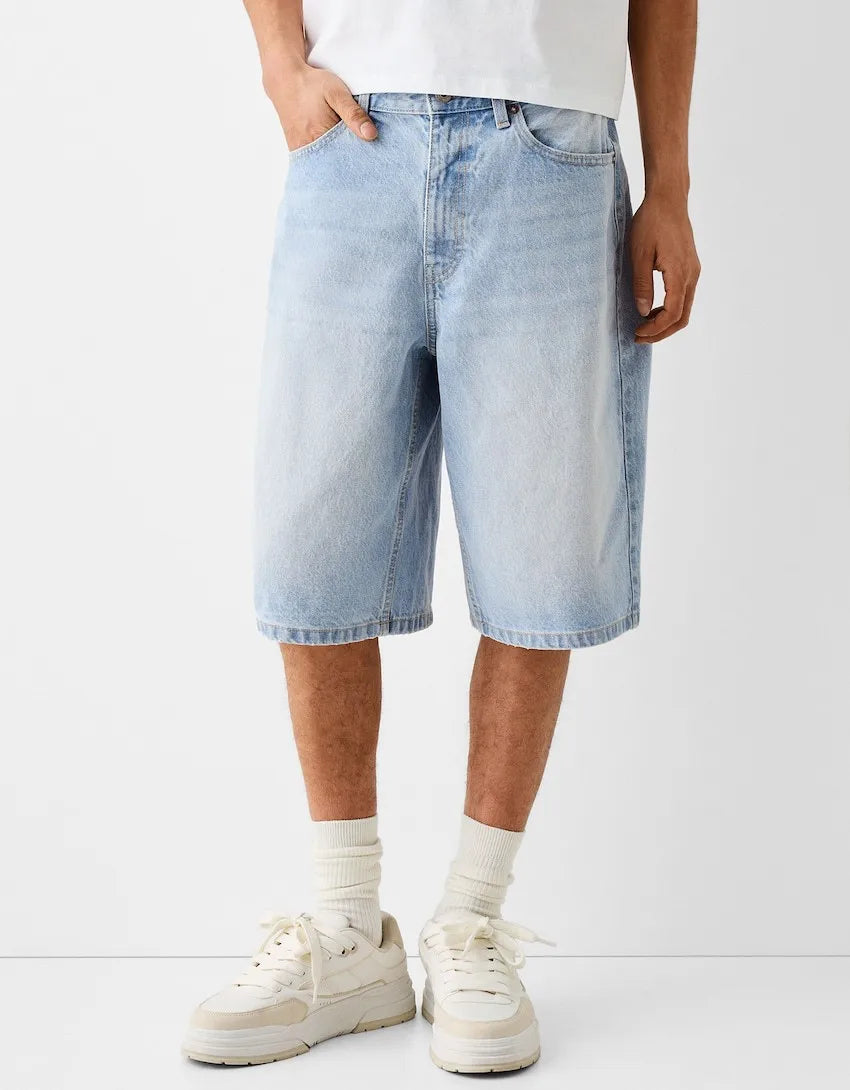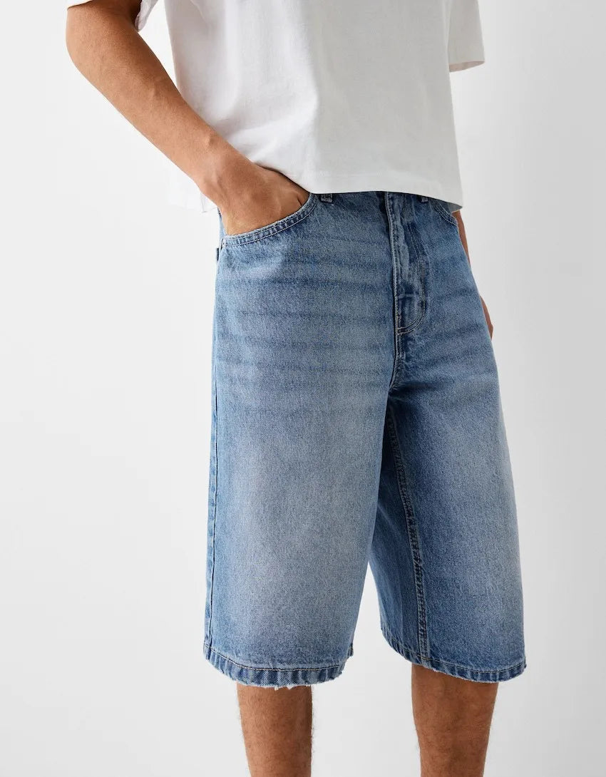 These summer men’s jeans shorts rock a washed vintage look with a loose, wide-leg fit. Knee-length and solid, their elastic denim keeps you comfy for all-day wear. An American-style staple for laid-back, rugged vibes.