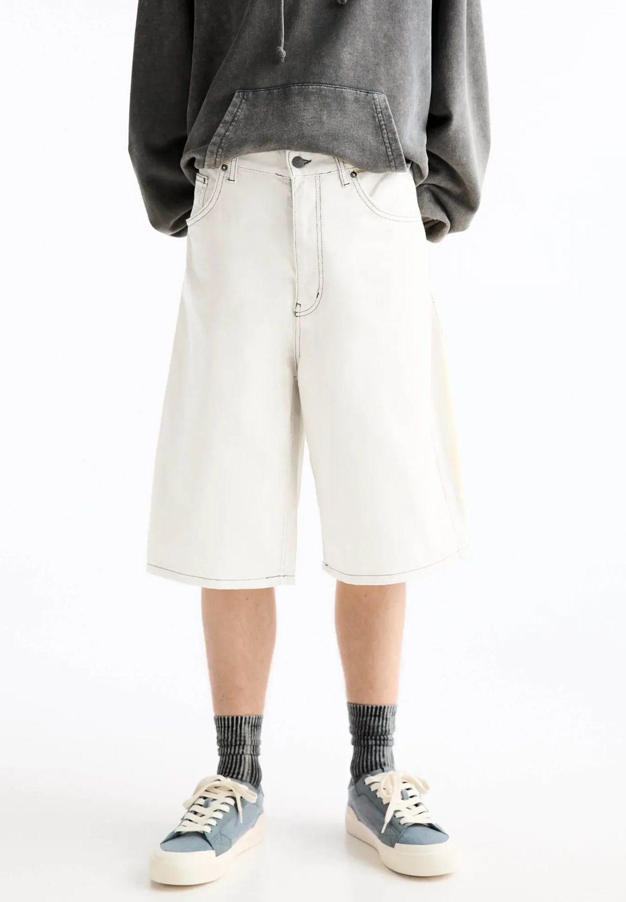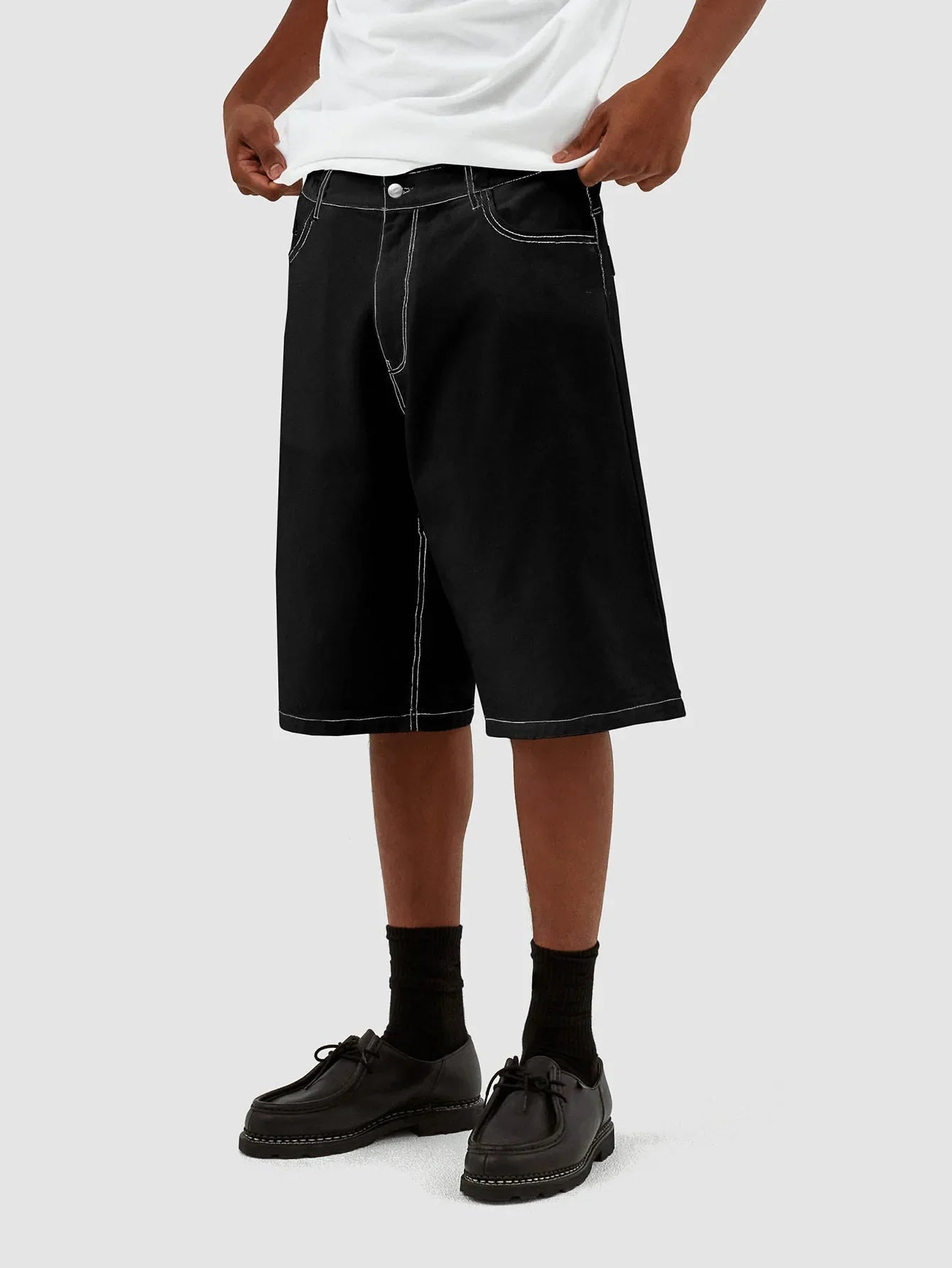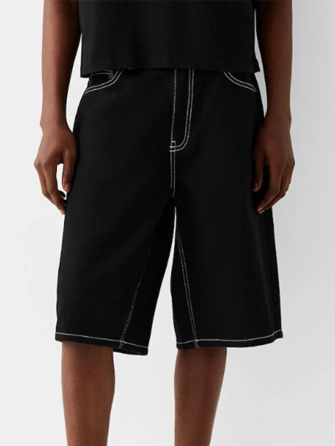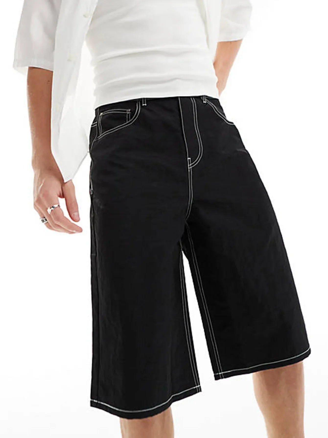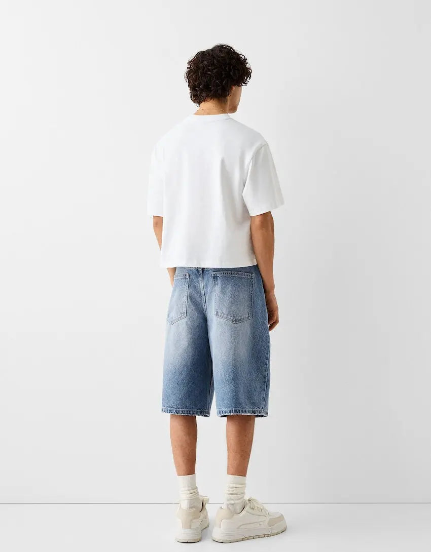 These summer men’s jeans shorts rock a washed vintage look with a loose, wide-leg fit. Knee-length and solid, their elastic denim keeps you comfy for all-day wear. An American-style staple for laid-back, rugged vibes.