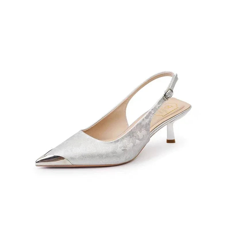 Crafted in soft satin with a sculpted heel and pearl-wrapped strap, the Celeste adds quiet drama to any summer ensemble. Refined, feminine, and visually striking in motion.