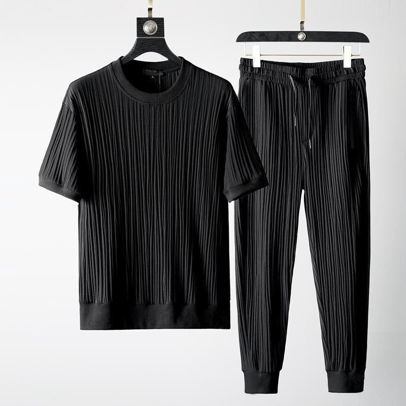 The Valexo Tracksuit is a modern and sporty clothing ensemble designed for active individuals seeking comfort and style. This tracksuit features a short-sleeved top and a matching pair of trousers, providing a coordinated and cohesive look.