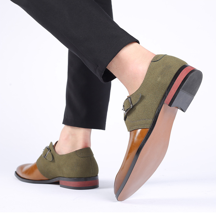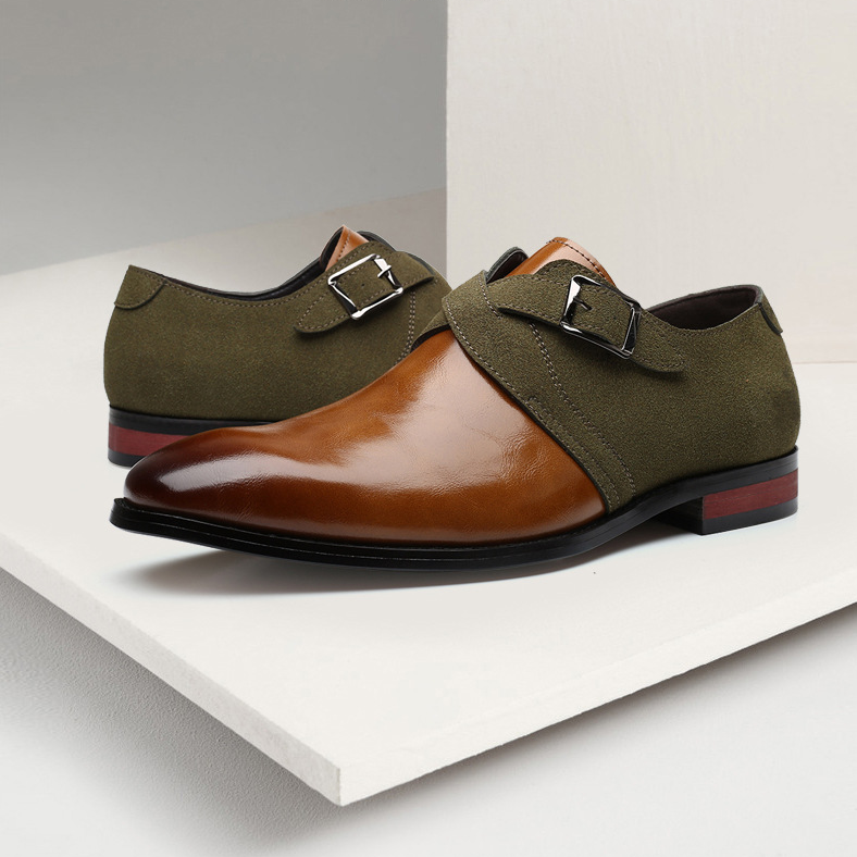 Classic monk-strap design, transformed with distinct dual-materials of polished leather and textured fabric, offers a bold twist on traditional dress shoes.The slip-on design allows for easy wear, while the cushionedinsolesensure long-lasting comfort for your busiest days.